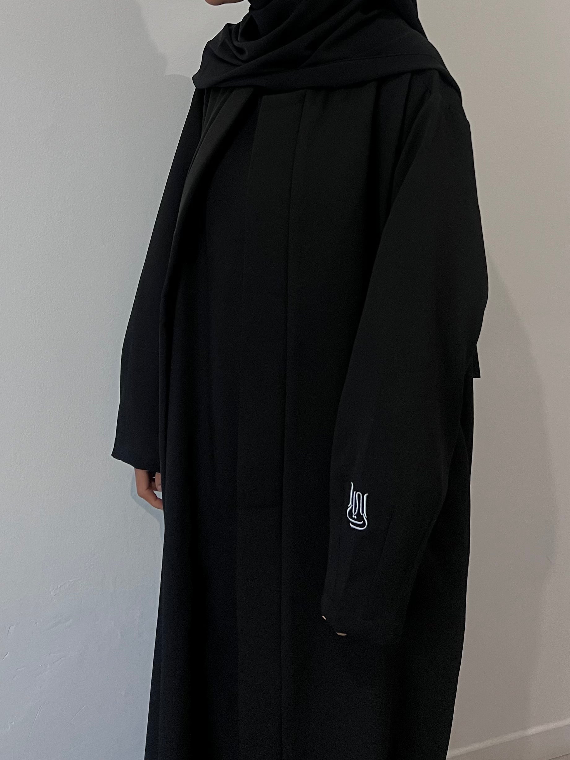 Confectionnée en barbie crepe noir, l’abaya QIYYAM offre une tenue fluide et un tombé structuré.